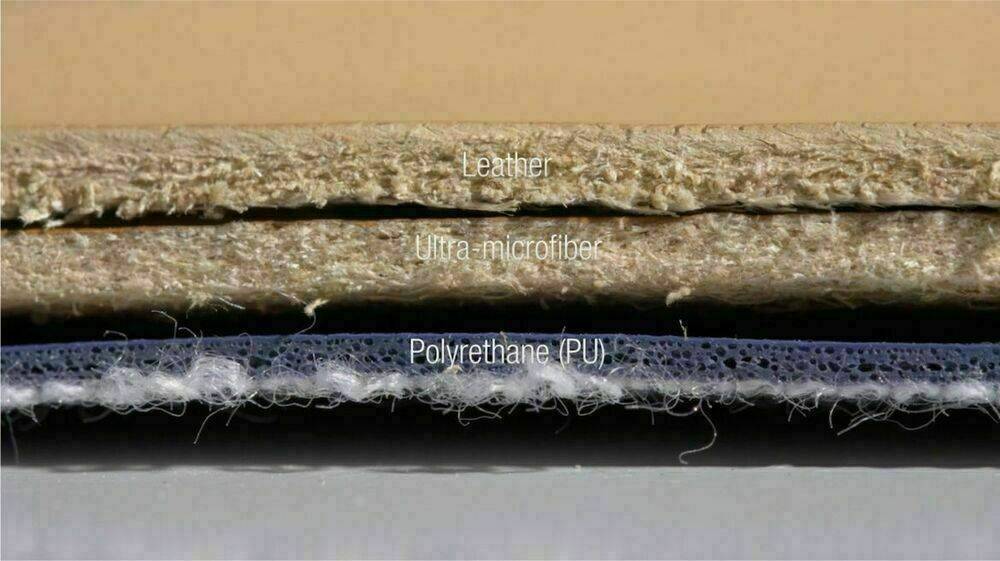 Nếu như da Pu và da Simili được dệt từ những tấm vải vụn, da vụn và phủ lên mình lớp nhựa PVC. Thì cấu tạo của Microfiber khác hơn rất nhiều.