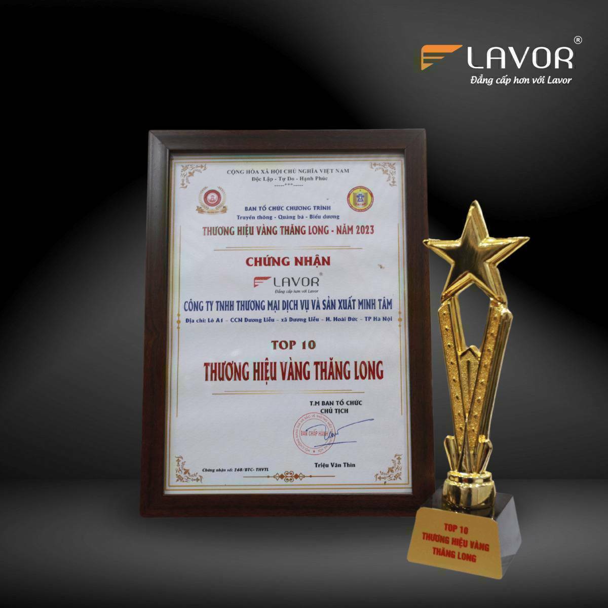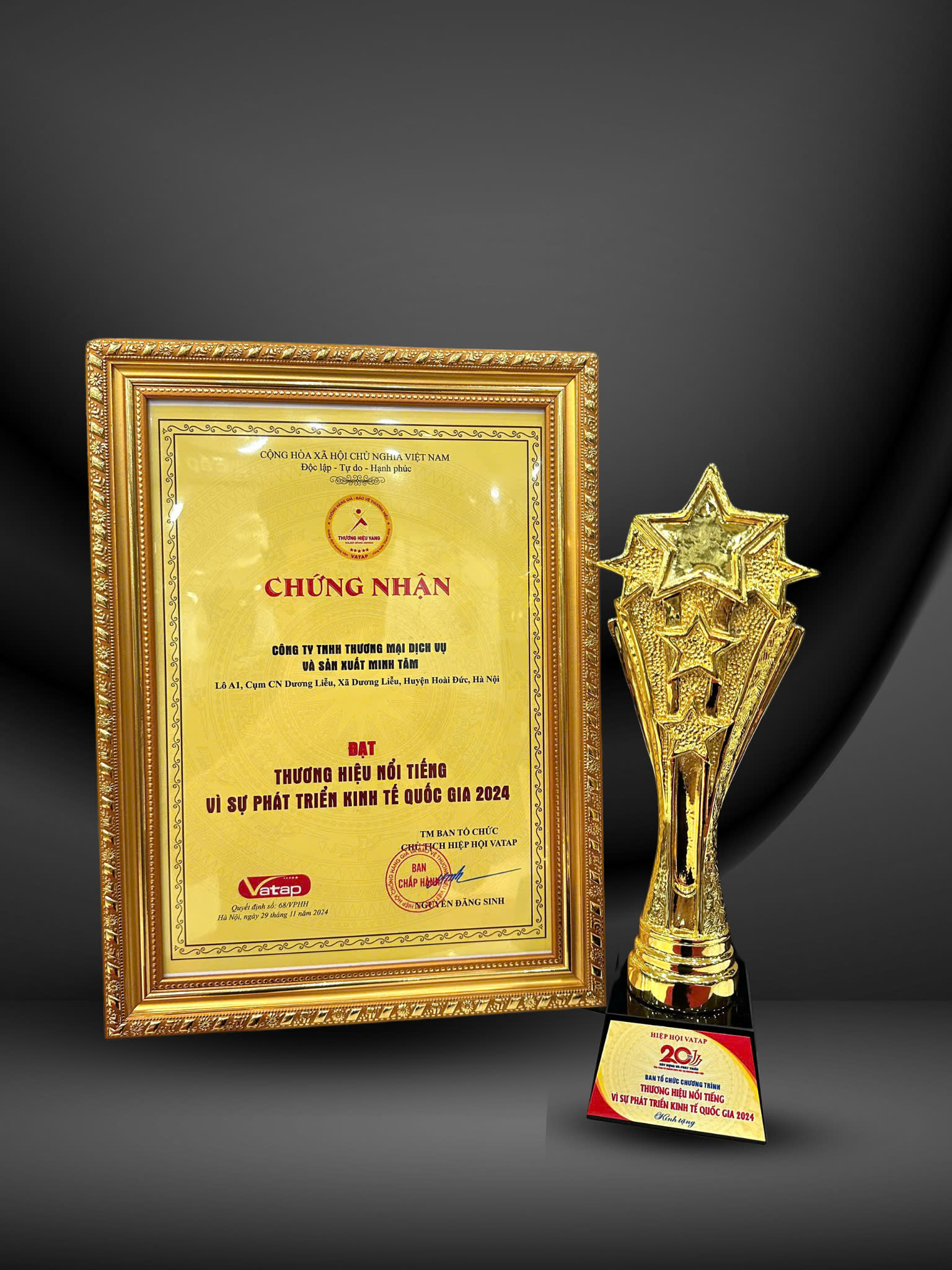 Minh Tâm đã được vinh danh trong Top 10 Thương Hiệu Vàng Thăng Long. Đây là một